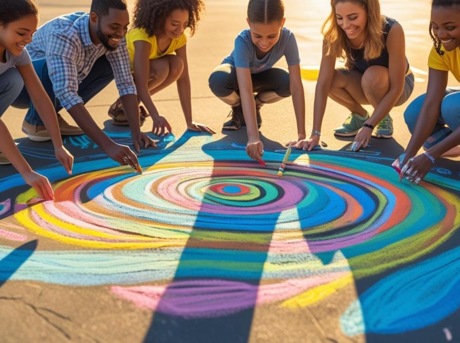 Vær med til at give Dokk1 den største fødselsdagsgave! Vi laver byens største kridtkunstværk, som er delt op i felter, så alle kan være med til at tegne.