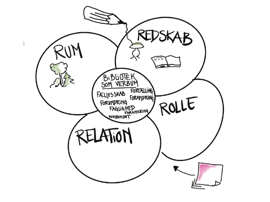 Brug modellen til at tænke, hvordan I vil gøre bibliotek i fx aktiviteter og processer.
