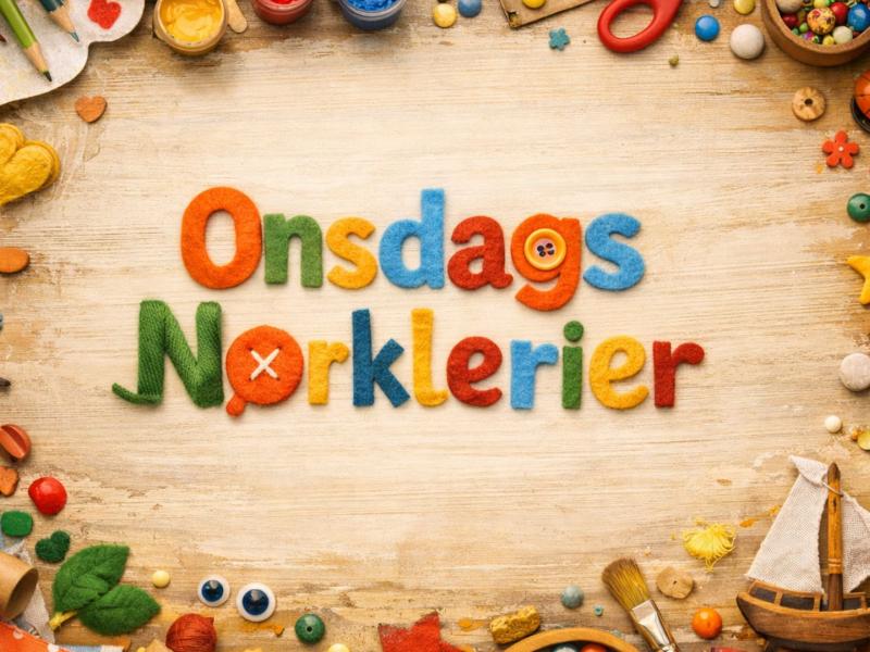 OnsdagsNørklerier ved kreabordet i børnebiblioteket er et tilbud til børn og deres voksne.